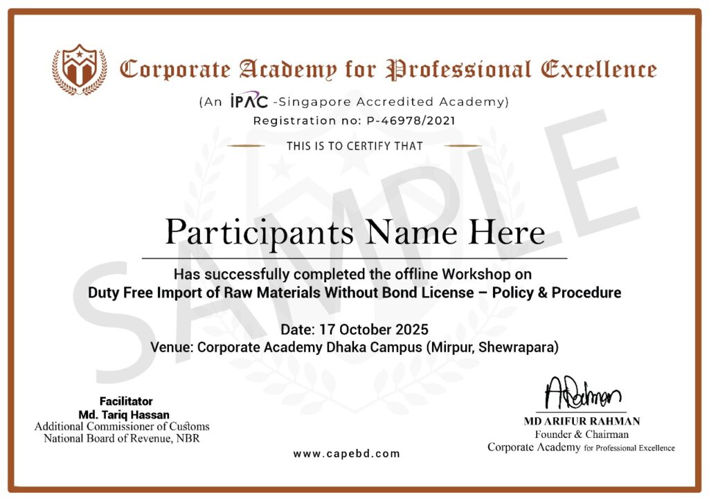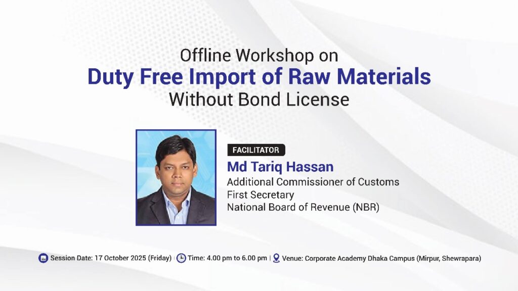 This exclusive offline workshop is designed to give participants a clear and practical understanding of how to legally import raw materials duty-free without a Bond License, the governing policy framework, and the step-by-step operational procedure to implement it effectively.
